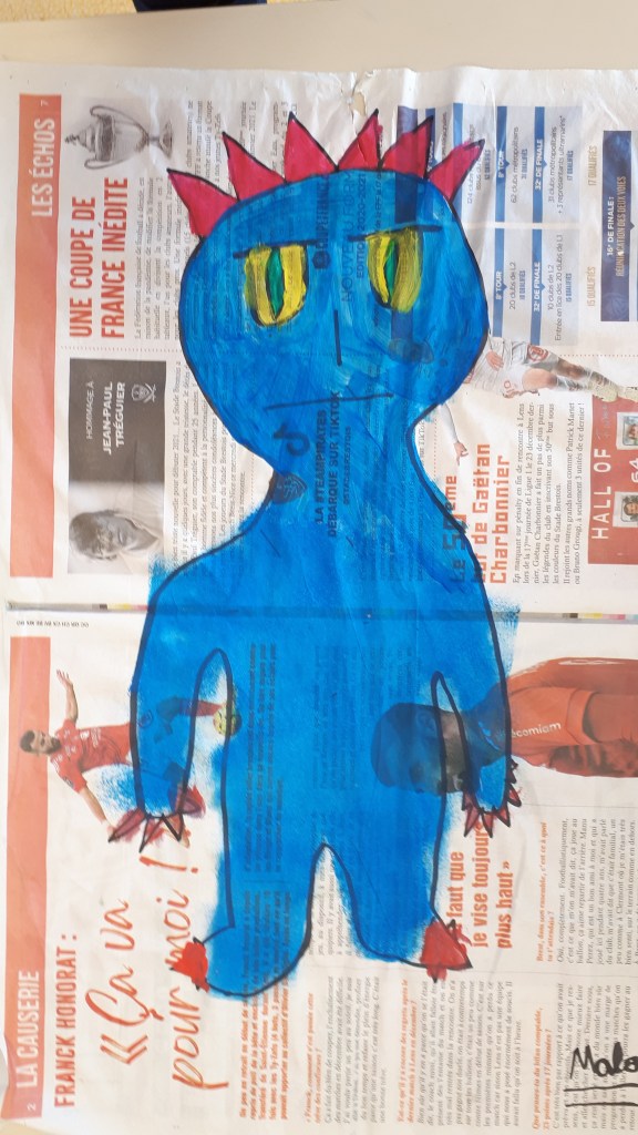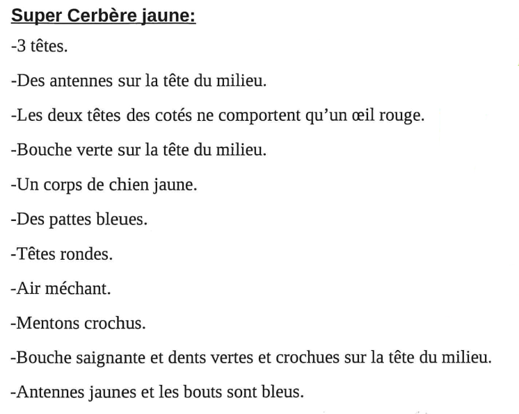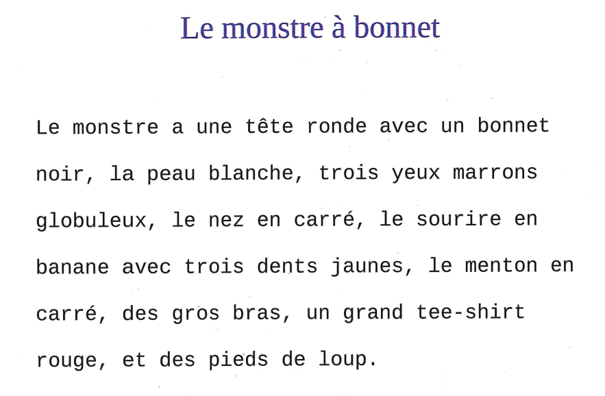 Ensuite, ces portraits ont été échangés entre les classes de CM2 pour que l’autre classe dessine les monstres et les descriptions ont été corrigées si nécessaire.