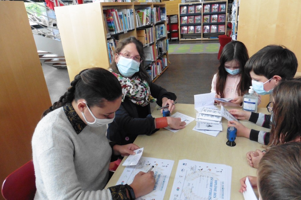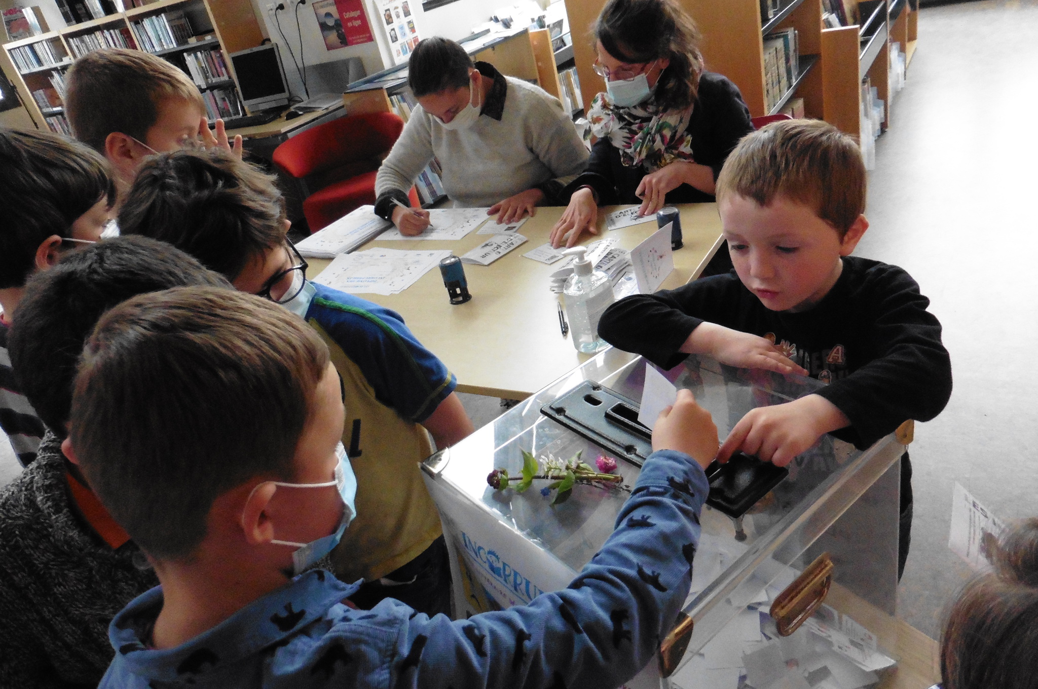 Le vendredi 07 mars, La classe des GS/CP monolingue s’est rendue à la médiathèque pour voter pour les livres préférés de la sélection des livres de GS et de CP.