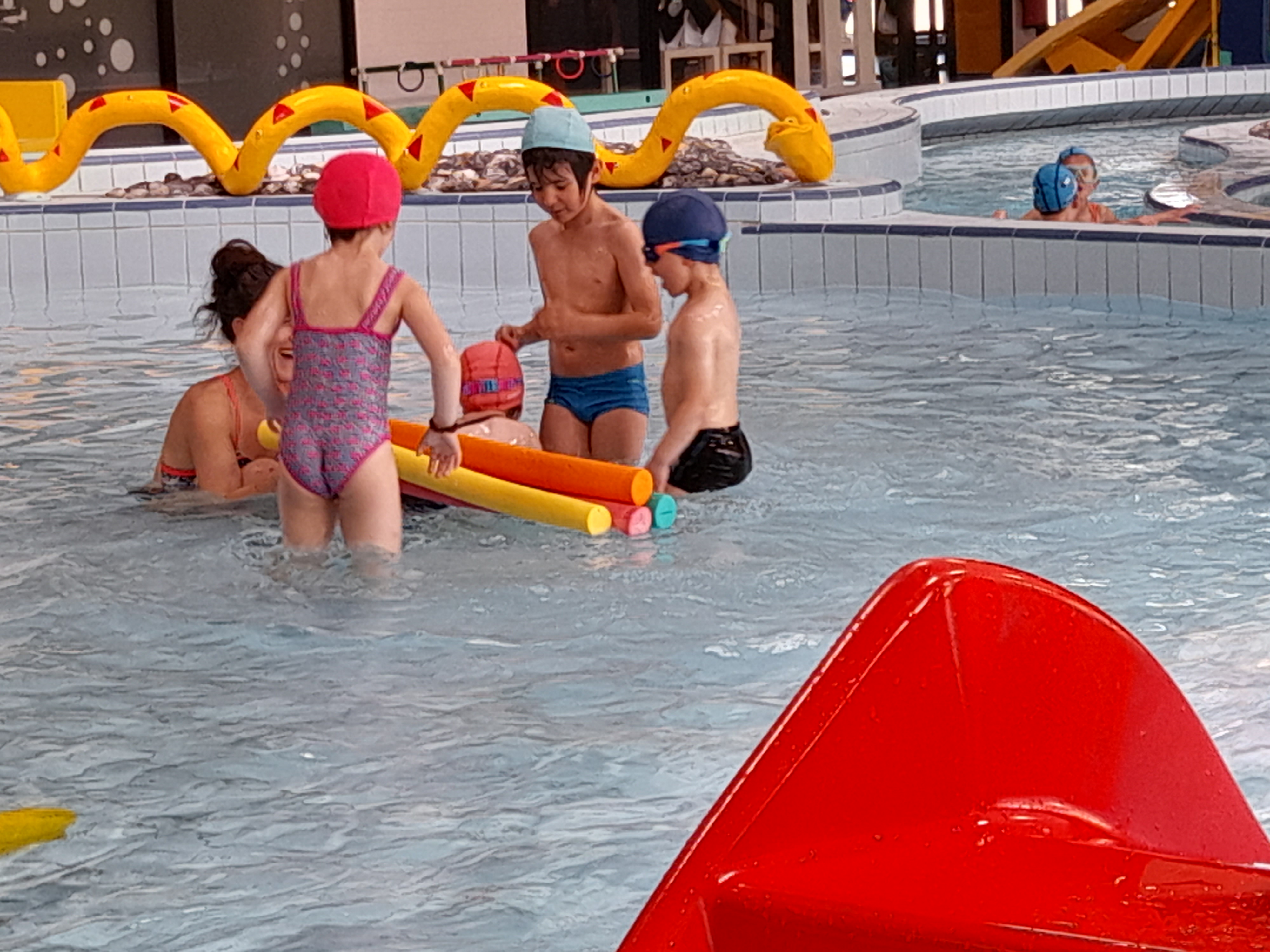 Chaque année, tous les élèves de GS, CP et CE1 de l’école vont à la piscine de Lesneven. Cette année, les GS CP CE1 CE2 monolingues sont allés en septembre /octobre et les GS CP CE1 bilingues en mars/avril.