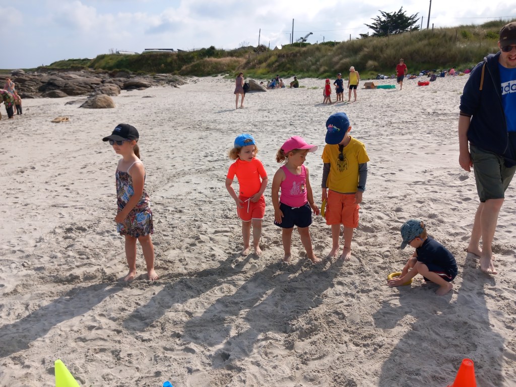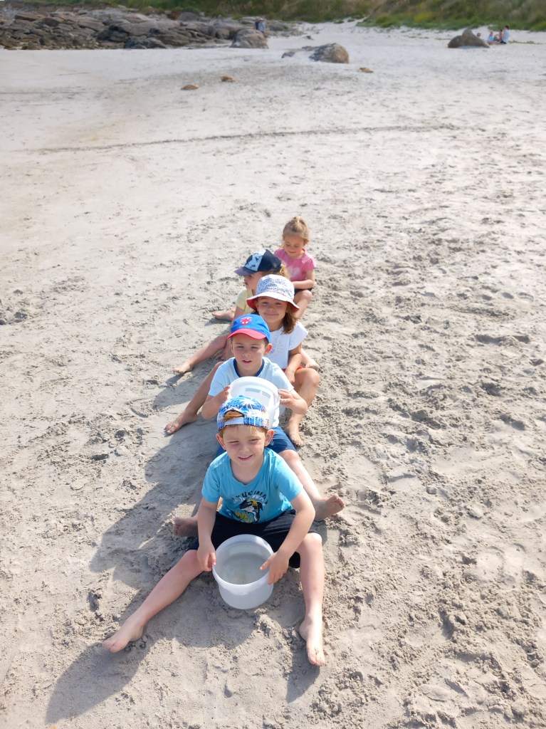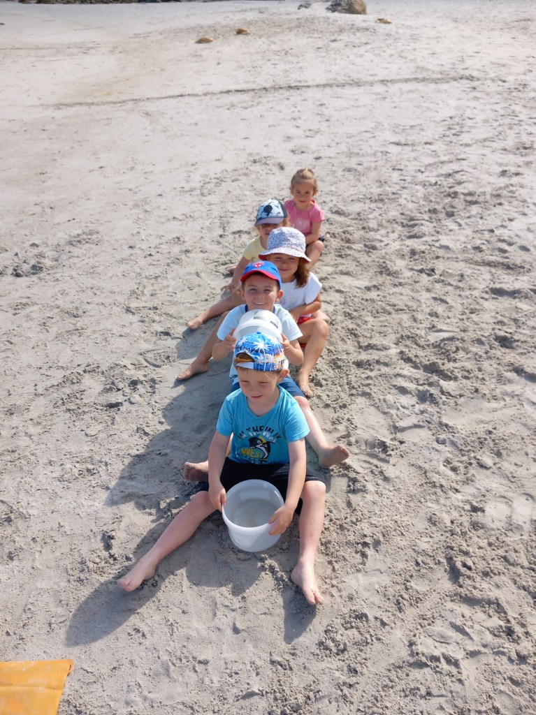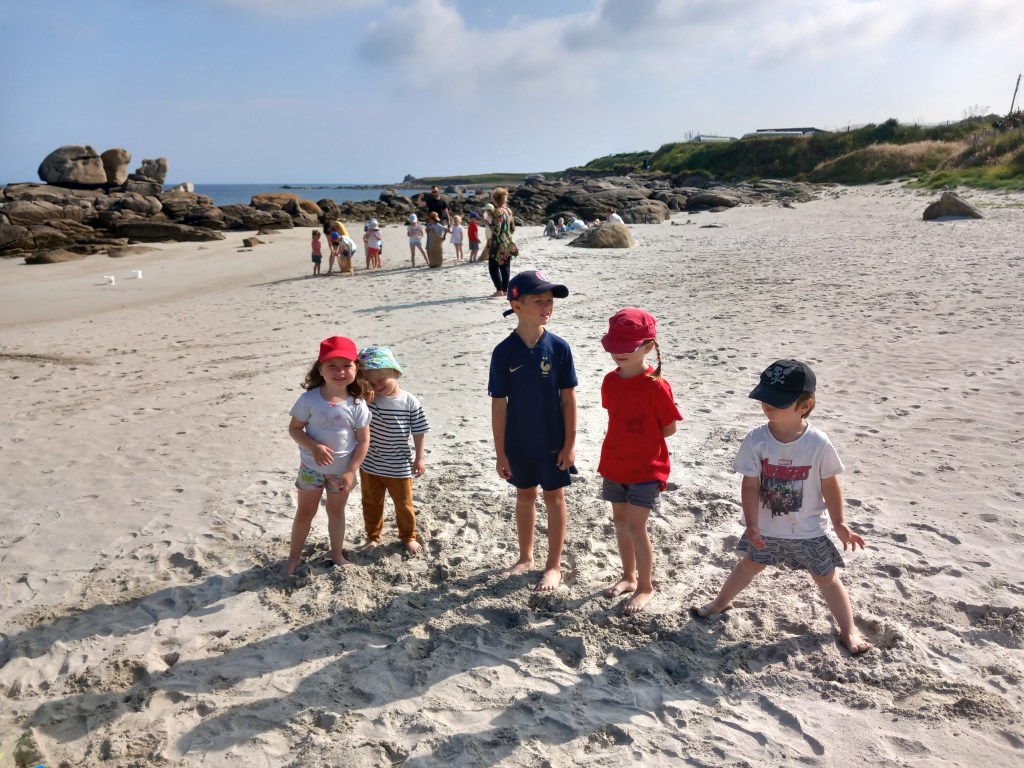 Le vendredi 23 juin, les élèves des deux classes maternelles bilingues sont allés à la plage de la Grève Blanche. Ateliers/jeux, pique-nique et les pieds dans l’eau! Plijadur o deus bet!
