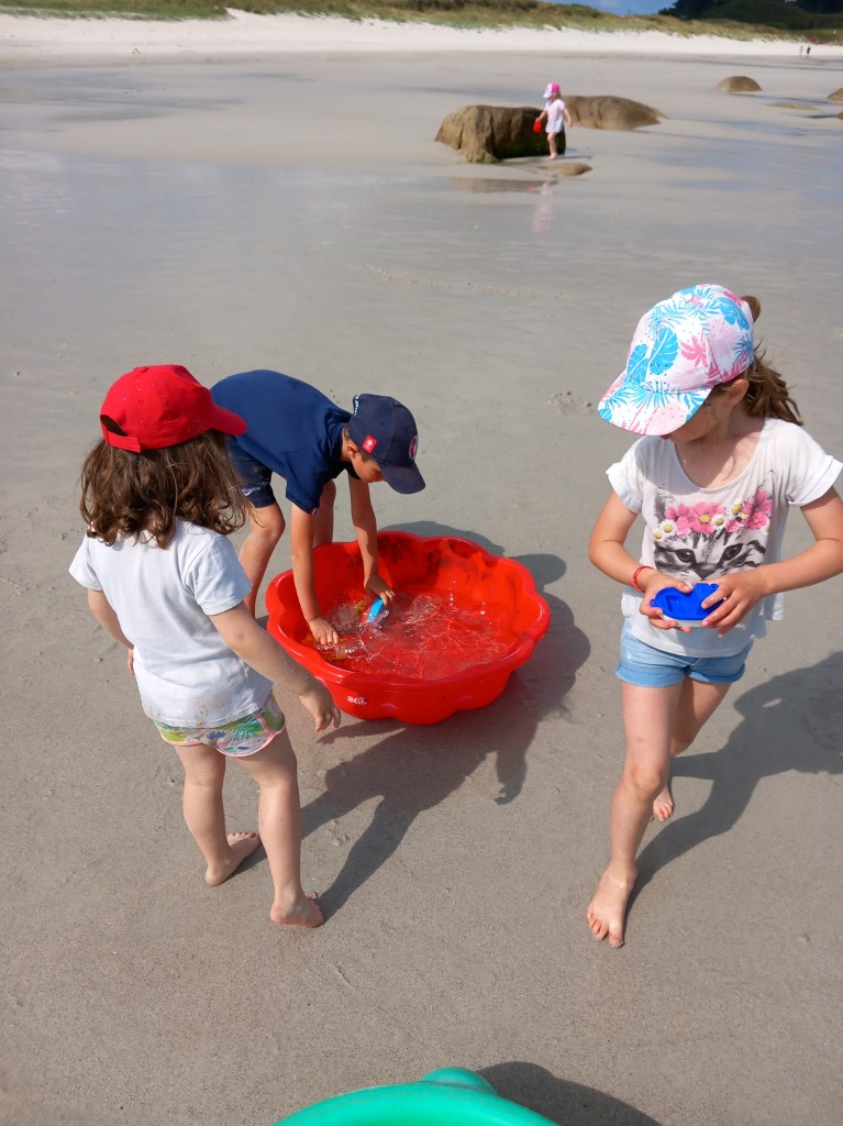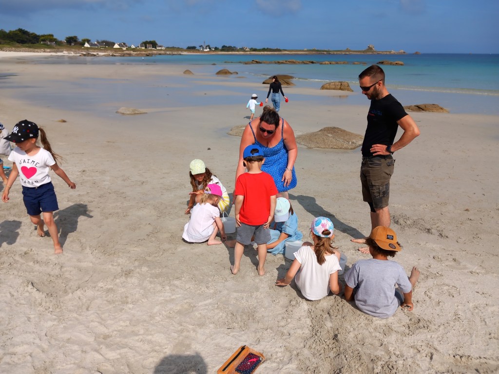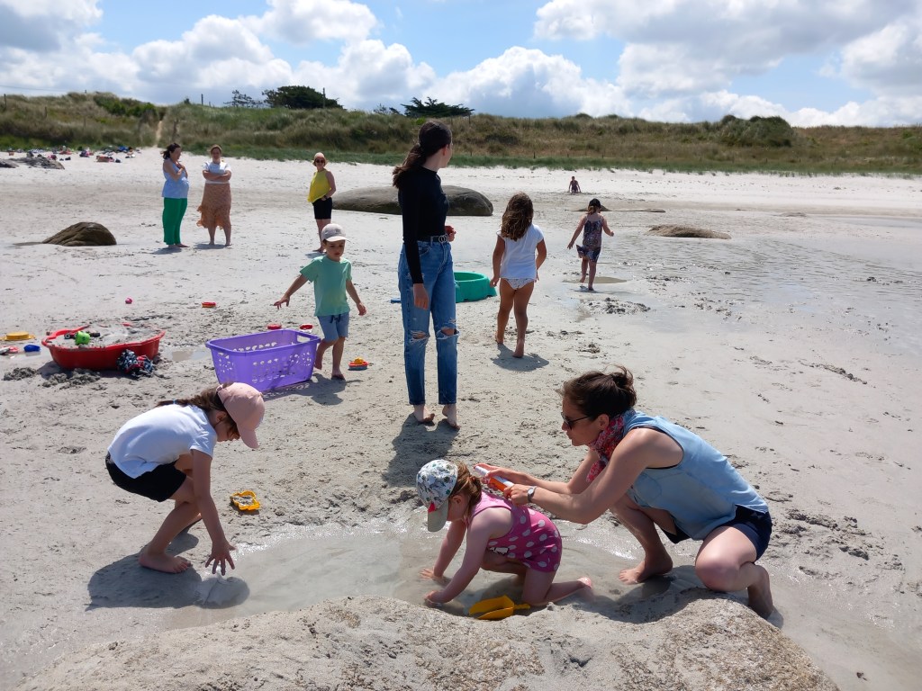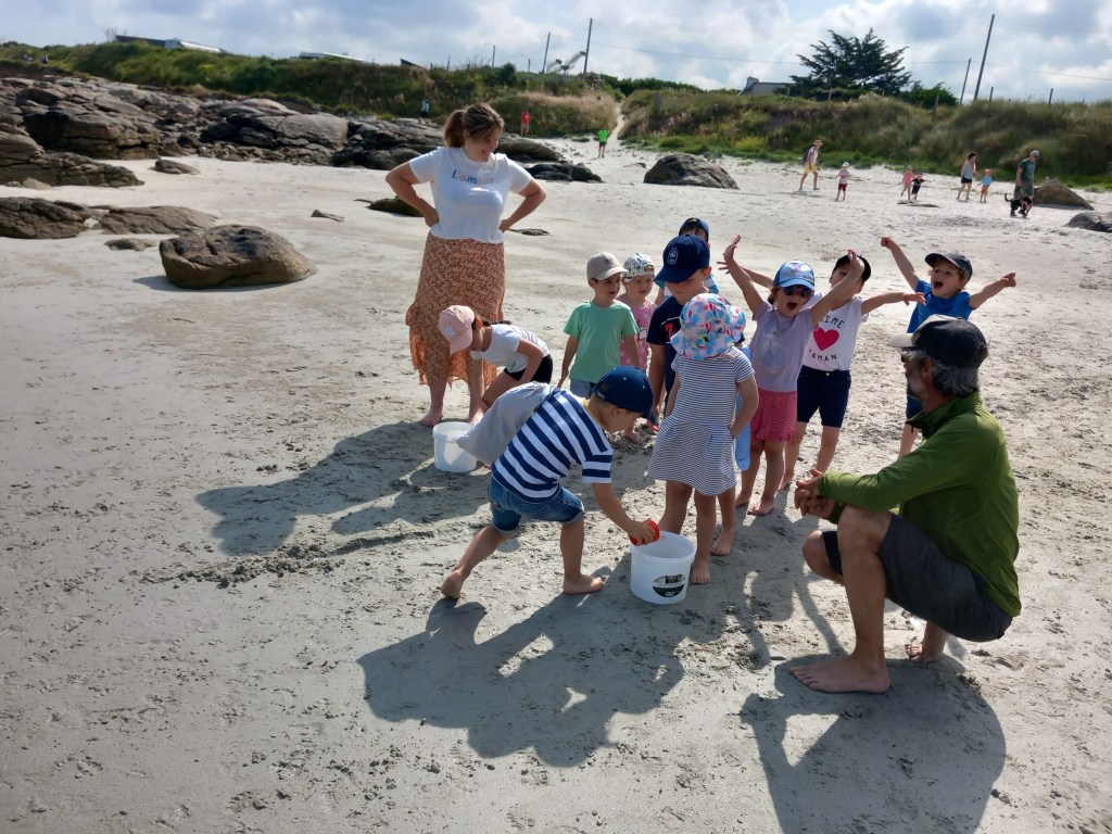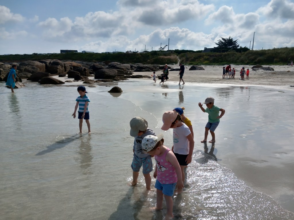Le vendredi 23 juin, les élèves des deux classes maternelles bilingues sont allés à la plage de la Grève Blanche. Ateliers/jeux, pique-nique et les pieds dans l’eau! Plijadur o deus bet!