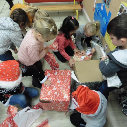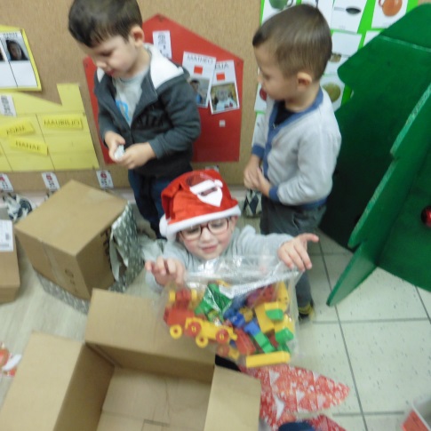 Comme nous avons été très sages, il a apporté pleins de cadeaux pour la classe. Il nous a dit qu’il viendrait bientôt apporter les cadeaux que nous avons commandés dans notre maison. Il a encore beaucoup de travail !!!